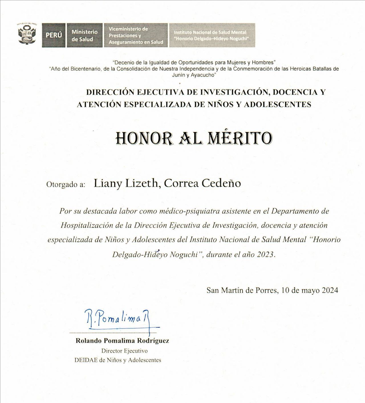 Certificados de Salud mental